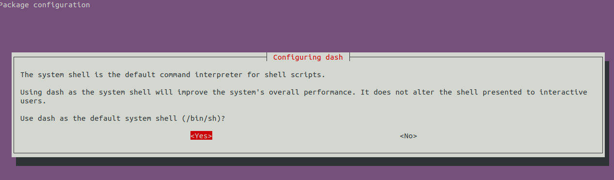 dash -> bash 로 변경하기 위한 다음 명령을 실행합니다.