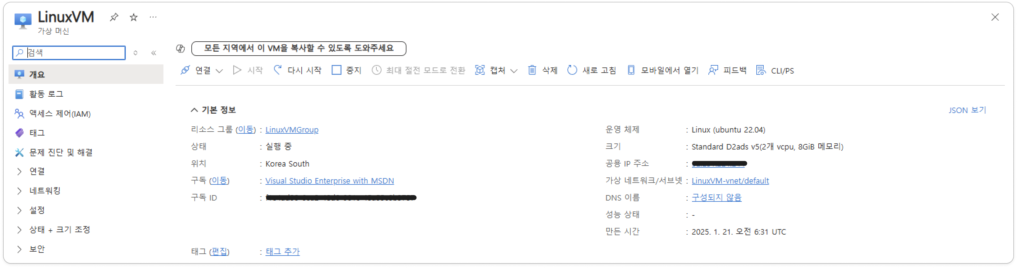 Azure Linux 가상 머신을 만들어 보았습니다.